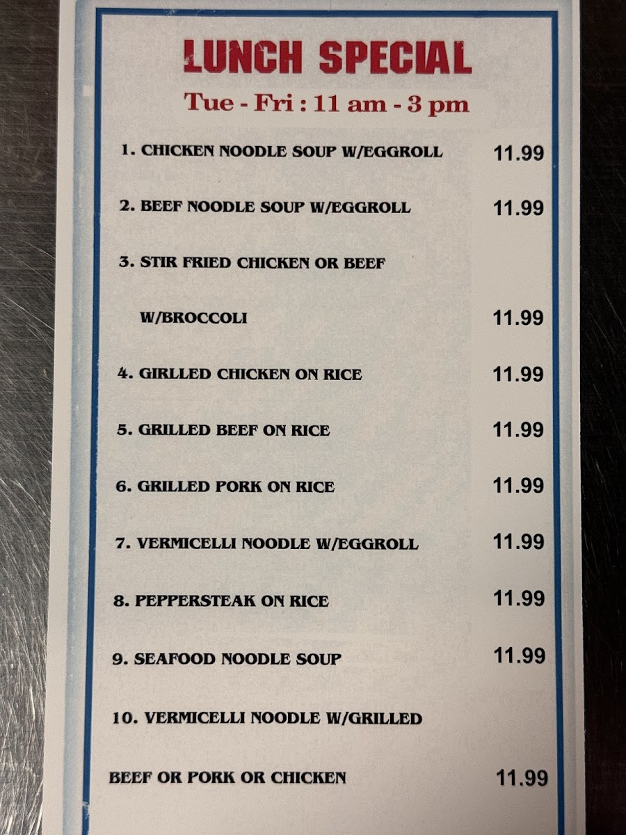 Welcome to Pho Miss Saigon, a delightful Vietnamese gem located in Glen Burnie, MD. This restaurant offers a culinary journey into the heart of Vietnam, specializing in authentic pho and a variety of vibrant entrees. Their menu features standout dishes like Cari Ga and grilled selections such as Bo Nuong and Tom Nuong, each crafted with fresh ingredients that provide an unforgettable flavor experience.